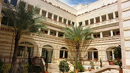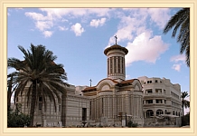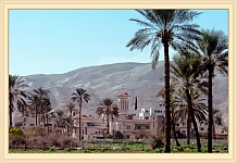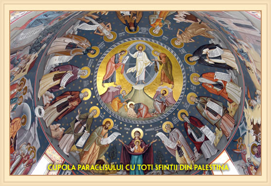 si iata ca o simpla dorinta a inaintasilor nostri de a avea un asezamant monahal in orasul Ierihon a devenit cu timpul un proiect indraznet si frumos asezat pe hartie de mesteri iscusiti, iar astazi a devenit realitate. Dar nu a fost usor. Zile si nopti s-au scurs si au adus cu ele probleme de tot felul, dar si satisfactii pentru cele realizate O imagine de ansamblu ne prezinta acum Asezamantul Romanesc din Ierihon ca pe o cetate a lui Hristos asezata in mijlocul unui frumos oras biblic. in centrul intregului complex se afla biserica ce poarta hramul "Nasterii Domnului si Toti Sfintii Romani". Biserica nu este foarte mare, dar impresioneaza prin frumusetea si eleganta stilului arhitectonic specific bizantin, in forma de cruce ce evoca altarul sfant al mantuirii noastre pe care s-a jertfit Hristos. Este de fapt o biserica specific romaneasca ce imbina fericit cele mai frumoase elemente arhitectonice romanesti cu elementele specifice Orientului crestin. Coloanele din pridvorul manastirii ca si peretii exteriori ai bisericii, sunt acoperite cu placi din piatra in forma de benzi slefuite si asezate dupa nuante care dau sfantului locas o frumusete aparte, dar si unicitate in tara Sfanta si poate in intreaga lume. Deasupra naosului troneaza o turla inalta cu ferestre alungite in chipul unor raze care permit o buna luminozitate in interior. in partea cea mai de sus a turlei sta asezata pe un glob o cruce ca chip al pamantului peste care sta asezat semnul biruintei lui Hristos.